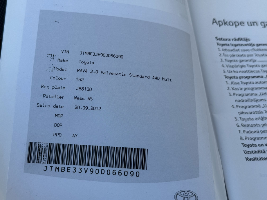 Toyota RAV 4 2.0 benzīna dzinējs, automātiskā pārnesumu kārba, 4x4 pilnpiedziņa.